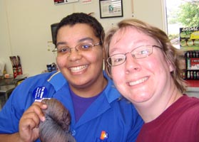 I have to give major props to Meredith, pictured left, for being willing to let me linger. It was gracious of her. I’d also like to point out that I spent a big wad of money (thanks again, Dad!) in her store as a result of her kindness, and perhaps if the owner of Earth Guild had been willing to stay open a little longer, some of that could have been hers. I’m just sayin’.