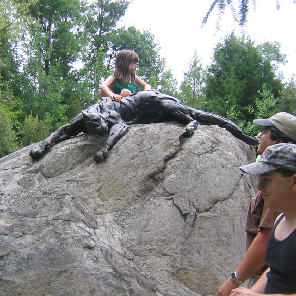 We saw the monkeys, and started to make our way back. We probably stayed a little longer than we should have, considering the heat. We didn’t see the giraffes, zebras, lions, or some other African animals. We did see chimps, gorillas, and varioius types of monkeys, which are the hubby’s favorite. You can’t see them clearly, but there are Patas monkeys in the exhibit they’re viewing. It was kind of a drive-by viewing, as we were all feeling ready to get out of the heat. We’ve decided that next time, we’ll go to the African side first (the Zoo has two entrances, one for Africa and one for North America) so that we can see what we’ve missed. And we’ll be sure to go when it’s not in the 90’s, as it turned out to be.